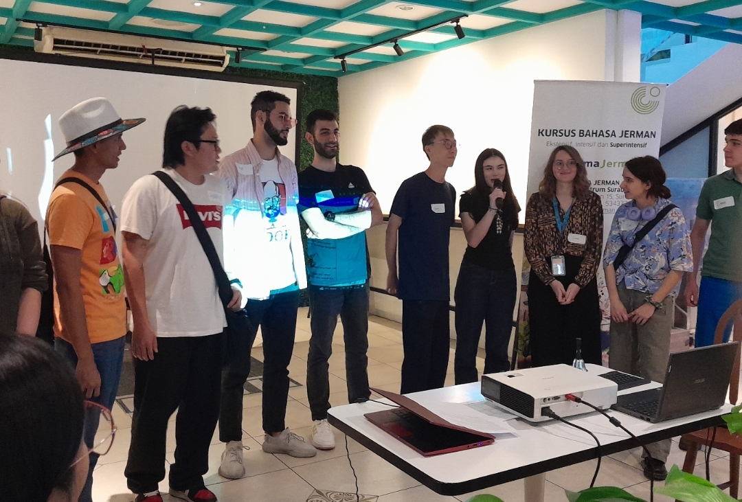 Salah satu peserta dari Prancis, Eva Bordessoule, mengungkapkan kegembiraannya bisa bergabung dalam acara ini. "Saya baru tiba di Surabaya tiga hari yang lalu, dan acara ini benar-benar membantu saya bertemu orang baru sekaligus belajar banyak tentang bahasa dan budaya asing," tuturnya.