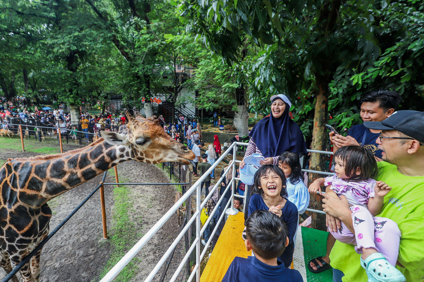 Pengunjung berwisata melihat satwa di Kebun Binatang Surabaya, Rabu (2/4/2025). (Riana Setiawan/ Jawa Pos)