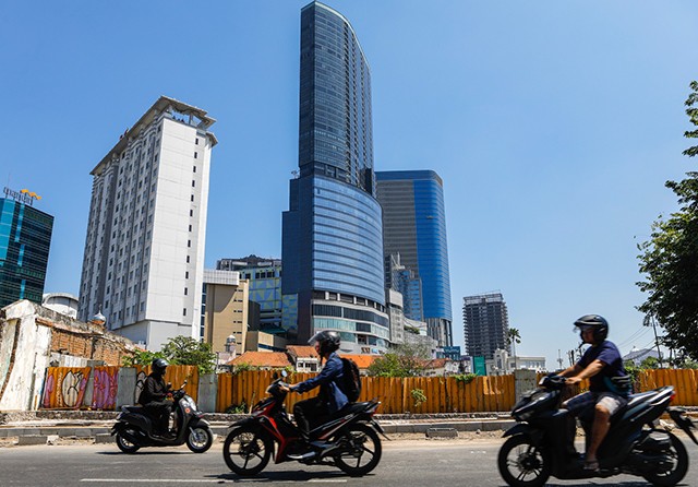 DITARGET 15 AGUSTUS: Pengendara melintas di Jalan Simpang Dukuh yang belum selesai dilebarkan. (Dipta Wahyu/Jawa Pos)