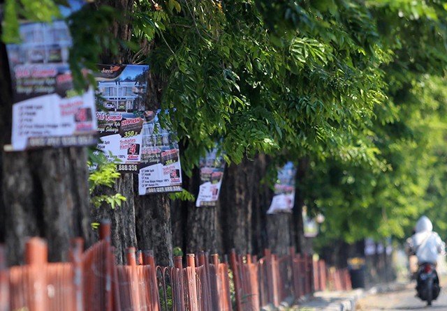 JawaPos.com - Siapa yang berani-berani melukai pohon demi promosi? Tanaman yang sejatinya mempercantik kota malah dijadikan etalase reklame. Liar pula.