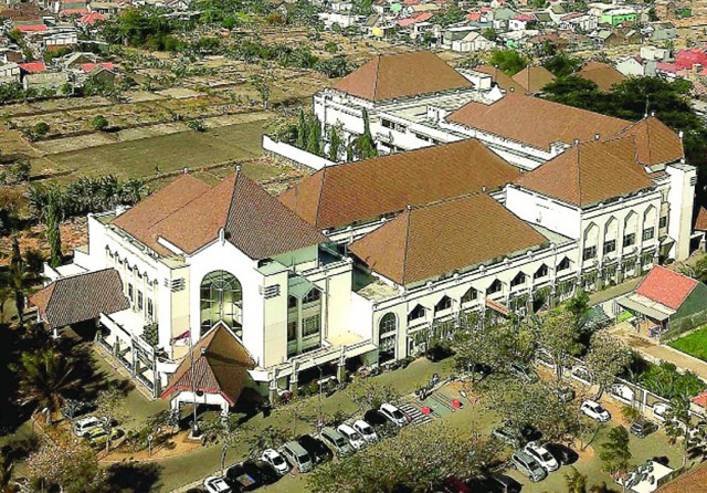 SEPAKAT: Foto RSUD Bhakti Darma Husada diambil dari drone, Senin (21/10). Di RS ini nanti fasilitas nuklir untuk kedokteran dibangun. (Riana Setiawan/Jawa Pos)