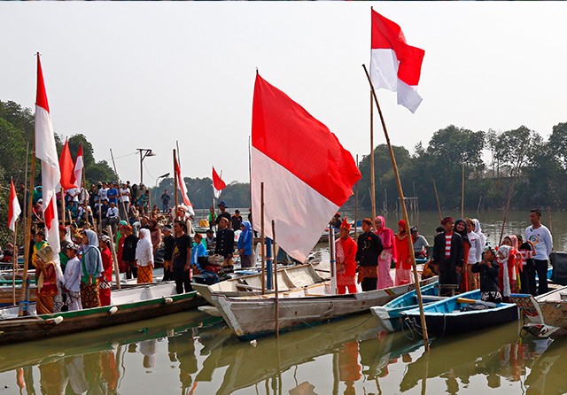 Di kawasan wisata tambat labuh Sontoh Laut, Kelurahan Tambak Sarioso, Kecamatan Asemrowo, para pelajar khidmat mengucap ikrar Sumpah Pemuda. Mereka berikrar di atas perahu nelayan.