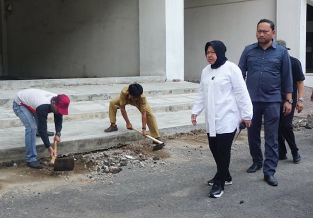 Risma didampingi sejumlah pejabat Pemkot Surabaya. Di antaranya, Kepala Dinas PU Bina Marga dan Pematusan Erna Purnawati, Kepala Dinas Komunikasi dan Informatika M. Fikser, Kepala Bagian Administrasi Pembangunan Rubben Rico, Kepala Bagian Humas Febriadhitya Prajatara, serta Kepala Bidang Sarana-Prasarana Dispora Edi Santoso.