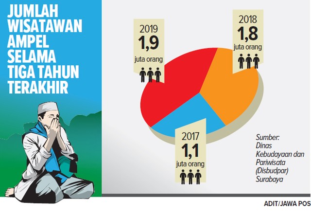 Berdasar catatan Dinas Kebudayaan dan Pariwisata (Disbudpar) Kota Surabaya, sedikitnya ada 1.968.452 orang yang berkunjung ke Ampel selama Januari–Desember 2019. Angka tersebut naik 786.382 orang daripada tahun sebelumnya. Pada 2018, jumlah peziarah hanya 1.182.070 orang.