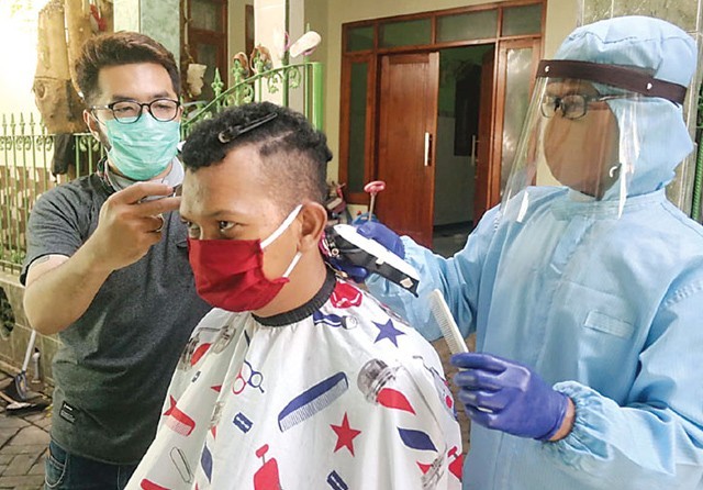 Memotong rambut dengan mengenakan APD lengkap dilakoninya sejak pertengahan April. Tepatnya satu minggu sebelum pembatasan sosial berskala besar (PSBB) tahap I diberlakukan. Semua itu berawal dari rasa cemas serta ketakutannya akan bahaya Covid-19.