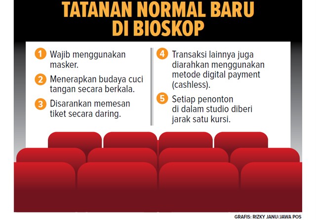JawaPos.com - Normal baru sudah di depan mata. Sejumlah pengelola tempat hiburan diharapkan menyiapkan standar protokol kesehatan. Termasuk bioskop. Beberapa pengelola tempat hiburan telah menyiapkan sejumlah protokol kesehatan. Protokol itu akan diterapkan di seluruh bioskop, termasuk di Surabaya.
