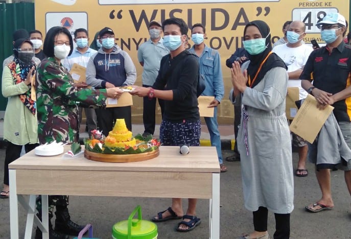 JawaPos.com–Kabar baik datang dari Rumah Sakit Darurat Lapangan (RSDL) Indrapura, Kota Surabaya. Pada Selasa (4/8), sebanyak 64 pasien dinyatakan sembuh dari Covid-19. Mereka mengikuti acara wisuda yang diadakan di depan RSDL. Yang diwisuda hari ini (4/8) menambah jumlah kesembuhan pasien di RSDL yang mencapai angka 1.022.