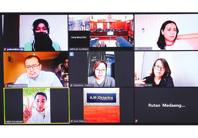 PENGAKUAN: Para korban penipuan memberikan kesaksian dalam sidang di Pengadilan Negeri Surabaya untuk terdakwa Risma (pojok kiri atas). (Dimas Maulana/Jawa Pos)