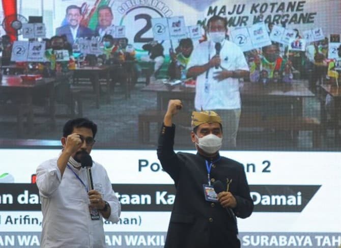 Sebelumnya, KPU setempat menggelar Parade Kesenian dan Deklarasi Kampanye Damai menjelang Pilkada 2020 di Singgasana Surabaya, Sabtu (26/9) malam. Acara tersebut dihadiri paslon dengan nomor urut 2 Machfud Arifin dan Mujiaman. Paslon nomor urut 1 dihadiri Cawawali Surabaya Armuji, sedangkan Cawali Eri Cahyadi berhalangan hadir.