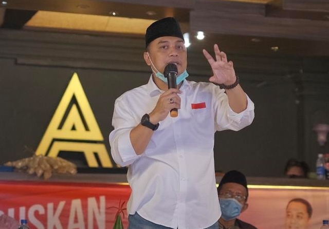 Eri Cahyadi saat menghadiri ulang tahun Kelompok Usaha Bersama (KUB), Rabu (21/10). (Tim Eri Cahyadi for JawaPos.com)