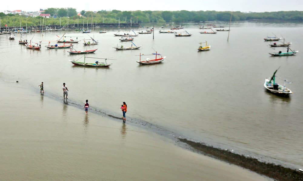 Di pesisir Tambak Wedi, misalnya. Senin siang (2/11) kondisi air laut mulai pasang. Naiknya air laut membuat satu per satu kapal yang tengah bersandar pun mengapung. Namun, kondisi tersebut tak dipedulikan para pengunjung. Mereka nekat bermain hingga masuk ke perairan.