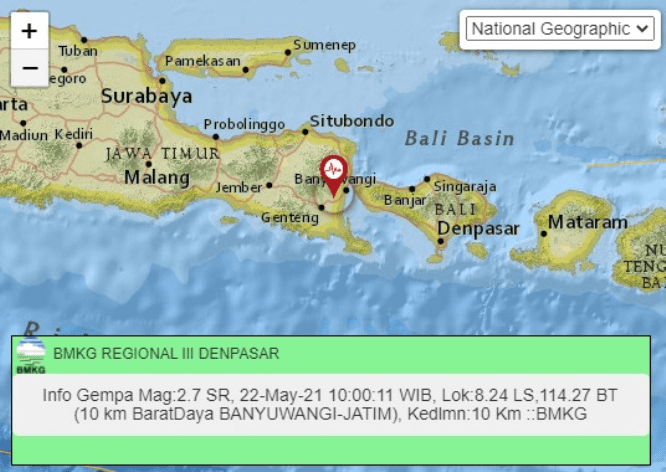 Gempa susulan 2,7 SR di Banyuwangi pada Sabtu (22/5) siang. BMKG Jatim