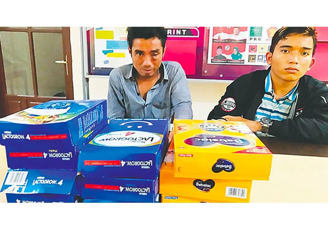 Mereka ditangkap pada Minggu (20/12) sekitar pukul 17.00. Kedua pelaku sempat dihadiahi bogem mentah oleh warga sebelum ditangkap dan ditetapkan sebagai tersangka. Barang bukti yang diamankan, antara lain, 7 kotak susu bubuk untuk balita usia 4 tahun rasa vanila dan rasa madu berat 750 gram serta 3 kotak susu bubuk untuk usia 3 tahun rasa madu dan vanila berat 1.000 gram.