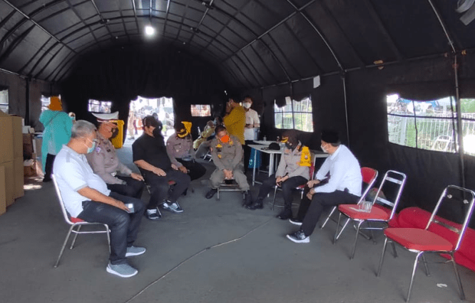 Forkopimda Jawa Timur berdiskusi di tenda penyekatan BNPB Jembatan Suramadu. Istimewa