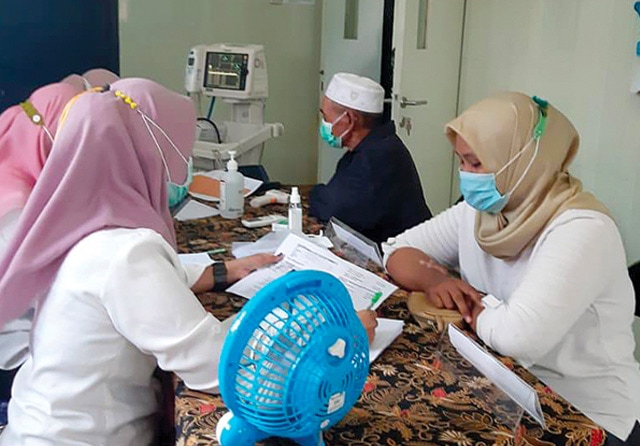 PERLU VAKSIN BANYAK: Tenaga kesehatan terus melakukan vaksinasi di puskesmas-puskesmas. Saat ini vaksinasi juga menyasar oara calon jamaah haji. (Galih Wicaksono/Jawa Pos)