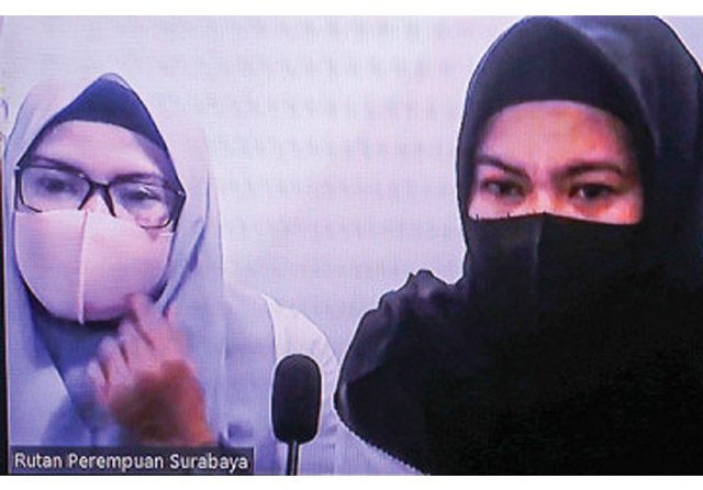 BERAT: Zainab Achmad (kanan) dan Inda Pratiwi menjalani sidang di PN Surabaya. (Dimas Maulana/Jawa Pos)