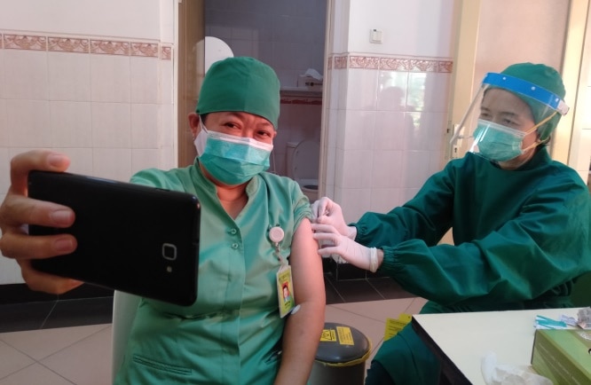 ”Kemarin sudah dikasih 13 vial. 1 vial bisa untuk 14 nakes,” jelas Bangun.