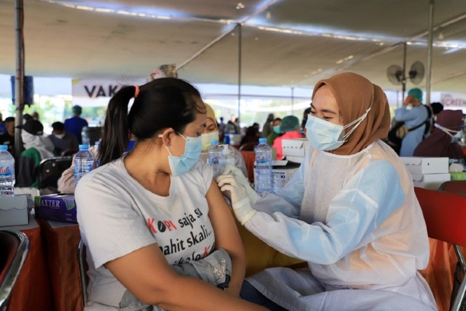 Dia menjelaskan, vaksinasi masal itu menyasar masyarakat umum dan kelompok masyarakat rentan, seperti lansia berusia di atas 60 tahun, anak-anak berusia 12-15 tahun, penyandang disabilitas, dan ibu hamil. ”Ibu hamil juga diperkenankan ikut, asalkan memenuhi persyaratan yang berlaku. Nanti di sana diskrining lagi. Pemkot juga menyiapkan lajur terpisah. Jadi, nanti ada lajur untuk anak-anak, ibu hamil, lansia, dan masyarakat umum. Itu terpisah,” terang Febriadhitya Prajatara.