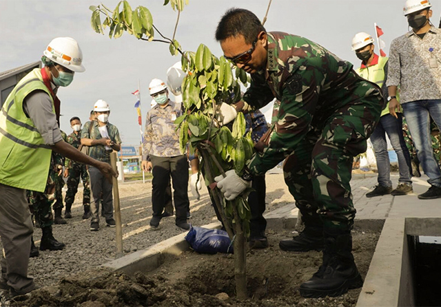 Rombongan tiba di Desa Wedoroanom sekitar pukul 14.50 WIB. Tidak lama, Jenderal Andika berada di lokasi proyek pembangunan tersebut. Setelah ngobrol dengan jajaran manajemen PT Wika, sebagai kontraktor, dia berkeliling untuk melihat progres pembangunan. Lalu, melakukan penanaman pohon.