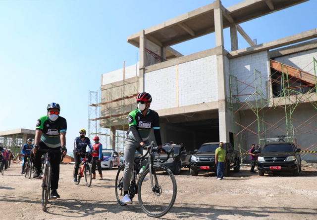 Bupati Sidoarjo Gus Muhdlor saat meninjau RSUD Sidoarjo Barat sambil bersepeda. (Istimewa)