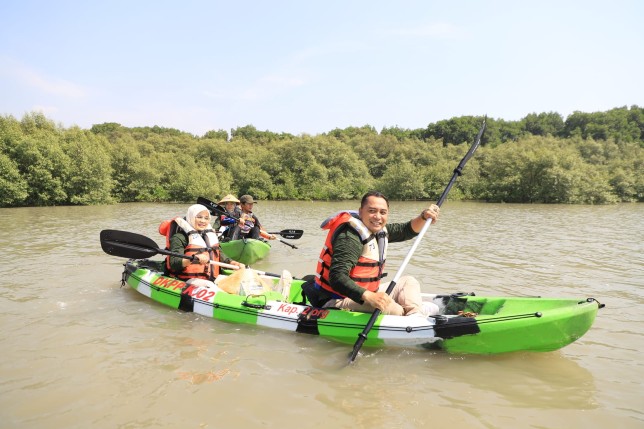Selain menawarkan harga tiket yang bervariasi, pengunjung juga dapat merasakan sensasi menaiki kano atau sekoci dengan melintasi mangrove. ”Di sini sangat luar biasa karena bisa lewat tengah-tengah mangrove pakai kano. Jadi, kita bisa merasakan indahnya mangrove dan indahnya alam di Surabaya,” ucap Eri.