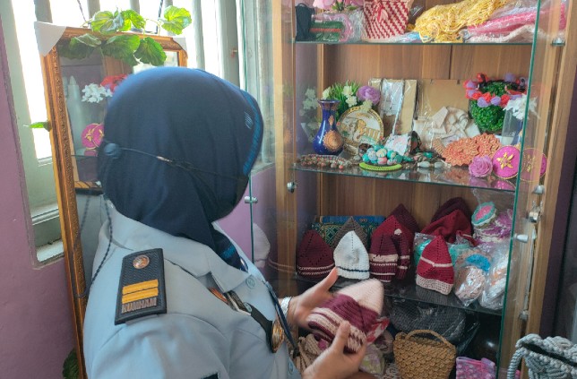 Merajut peci bukan hanya hobi. Namun menjadi salah satu kegiatan yang diajarkan di Rumah Bimbingan Kerja Rutan Perempuan Surabaya.