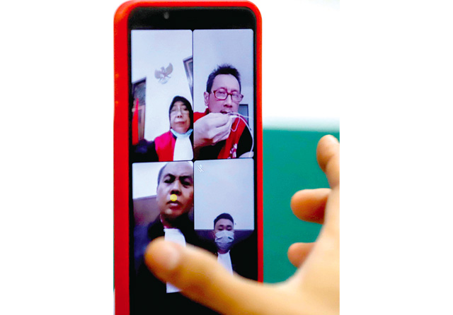 AJUKAN KEBERATAN: Terdakwa Hendro Satrijo (foto kanan atas) memberikan tanggapan atas surat dakwaan yang dibacakan jaksa Lujeng Andayani di PN Surabaya, Kamis (24/11). (Allex Qomarulla/Jawa Pos)