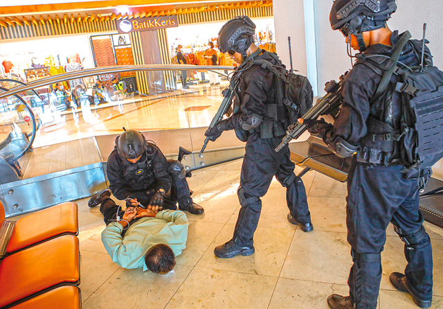 JawaPos.com - Kericuhan terjadi di objek vital Bandara Internasional Juanda, Selasa (6/12) pagi. Bukan hanya di luar, melainkan juga di area boarding penumpang. Terjadi aksi tembak-menembak antara anggota Komando Pasukan Katak (Kopaska) dan teroris.
