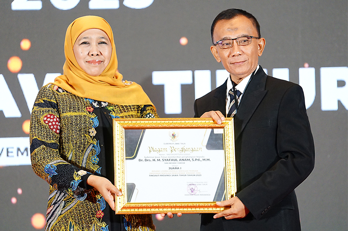 JawaPos.com - Prestasi diraih SMAN 1 Gresik. Sekolah tersebut menjadi juara Sekolah Penggerak terbaik se-Jawa Timur. Penghargaan dari kompetisi yang diikuti seluruh lembaga pendidikan tingkat SMA se-Jawa Timur itu diberikan langsung oleh Gubernur Khofifah Indar Parawansa.