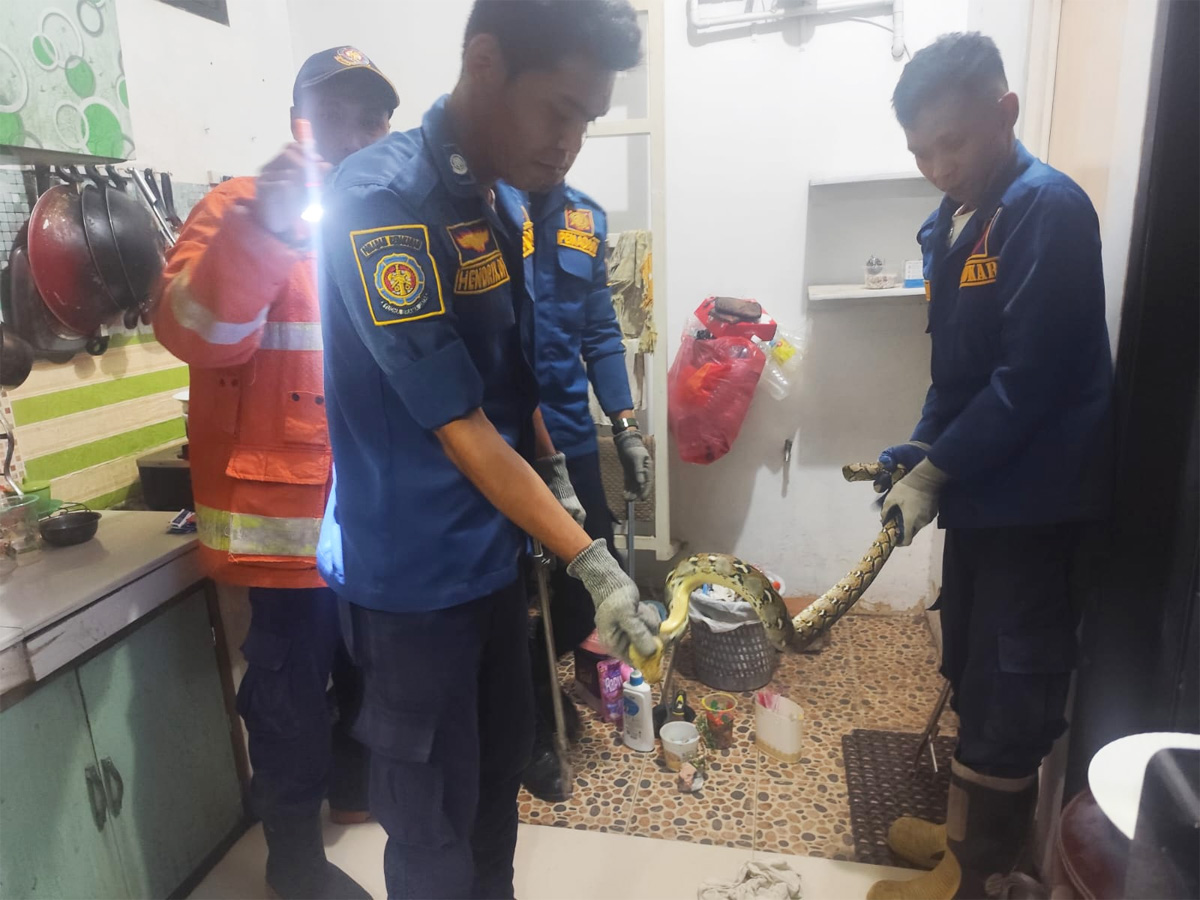 "Besar kemungkinan masuk ke rumah karena mencari mangsa, karena gemar mengkonsumsi tikus," tandas Petugas Damkarla Gresik Mangara Pakpahan.