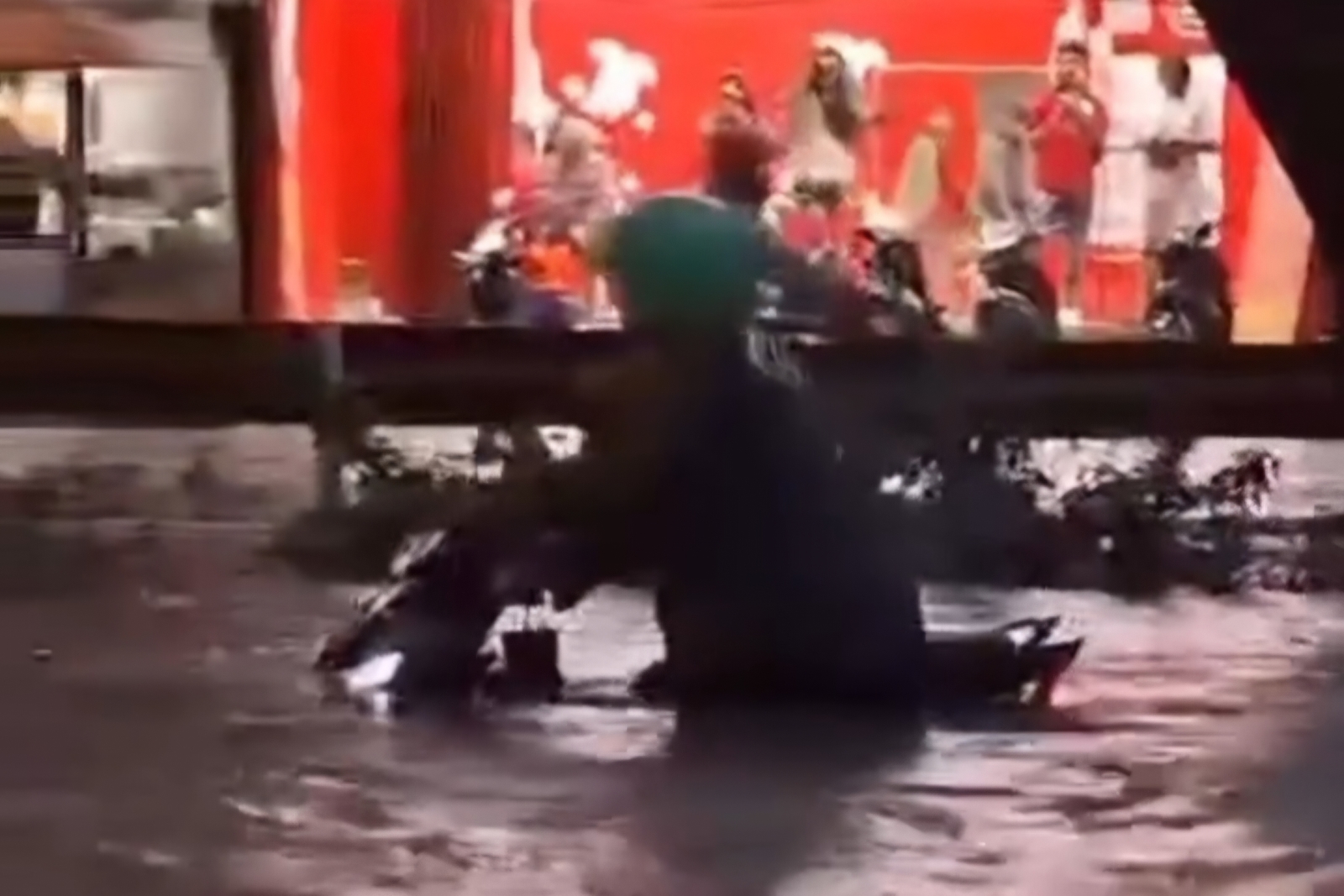 Banjir merendam kawasan Simo, Surabaya setelah hujan deras selama tiga jam non stop. Ketinggian air mencapai pinggul orang dewasa. (Instagram @aslisuroboyo)