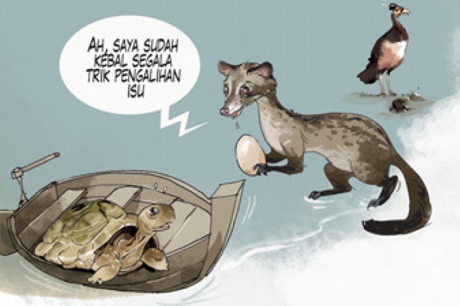 Kancil penasaran, ”Jadi, meski sudah ada pengalihan isu, kamu tetap ingat telur mereka?”