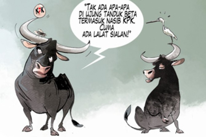 ”Tak ada apa-apa di ujung tanduk beta, termasuk nasib KPK. Cuma ada lalat sialan!” salah seorang banteng memastikan.