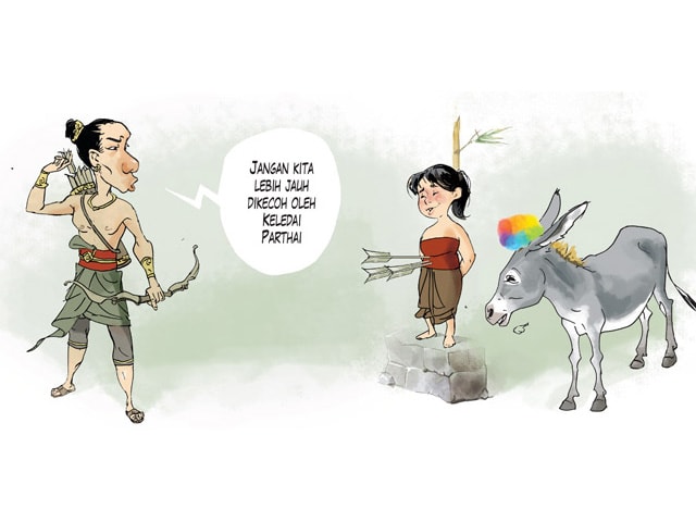 O ya, Keledai Parthai menamai arca di gapura dukuh itu Patung Kebodohan. (*)