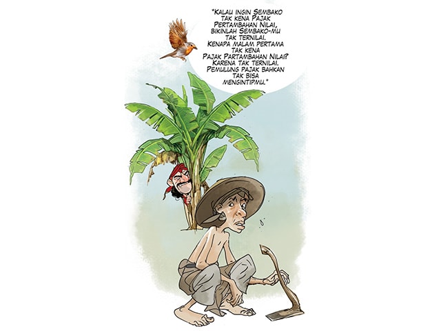 Martabatnya, lho, ya, bukan nilainya. Kalau yang bertambah nilainya, gawat! Nanti bisa dikenai pajak pertambahan nilai. Sekarang jagabaya yang merangkap sebagai pemulung pajak sedang mengintai di mana-mana. Para pengantin baru yang cintanya bernilai pun tak luput dari cengkeraman pajak pertambahan nilai. Itu sebabnya para bucin kini berlomba-lomba agar cintanya tak ternilai. Petani dan pedagang terinspirasi itu. Mereka berlomba-lomba agar sembakonya tak ternilai laksana cinta.