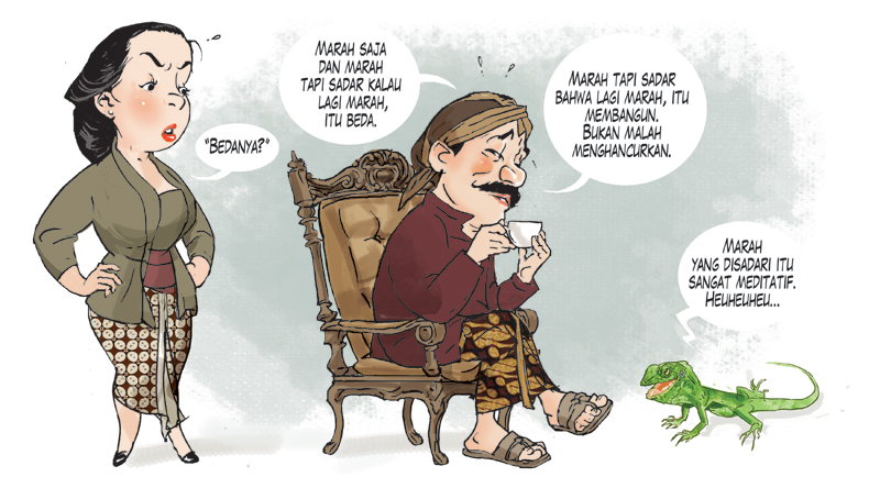 Kadal bunglon juga marah-marah saat merasa sukunya dihina kadal umum. No problem. Marah itu sangat meditatif, kok. Toh berakhir damai. Apakah kedamaian itu terjalin lantaran kadal bunglon tak sekadar marah, melainkan menyadari bahwa dirinya marah-marah?