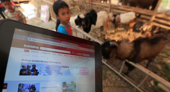 Mulai dari kambing, sapi, hingga unta kini tersedia secara online di Bukalapak.com yang bekerjasama dengan Global Qurban dari Aksi Cepat Tanggap (ACT), salah satu organisasi kemanusiaan.