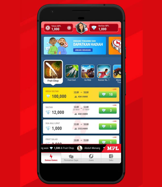 MPL menerapkan inovasi digital pada game arcade yang selalu populer dan digemari dari masa ke masa. Untuk peluncuran perdana versi Indonesia, platform MPL mengusung lima judul game yang bisa segera dimainkan, yaitu Fruit Chop, Go-Ride, Runner no.1, Monster Truck, dan Fruit Dart.