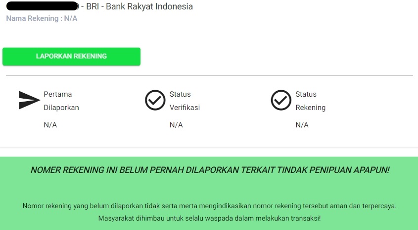 Nomor rekening yang dicek meliputi tindak pidana penipuan online, investasi bodong, obat terlarang, terorisme, dan kejahatan yang lain. Melalui laman tersebut, Kominfo memberi tiga menu utama: pengecekan, pendaftaran, dan pelaporan.