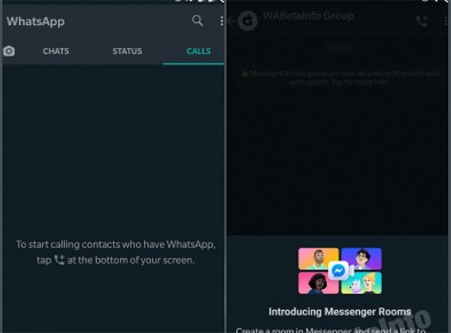 Pintasan untuk membuat Messenger Room juga tersedia di bagian WhatsApp lainnya, seperti tab Panggilan. Saat ini fitur ini hanya tersedia untuk sejumlah kecil pengguna beta di beberapa negara, tetapi akan segera meluas ke lebih banyak negara nantinya.