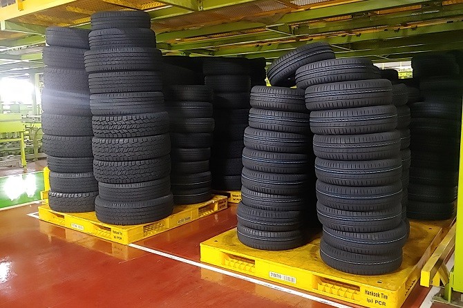 Ban mobil di pabrik ban Hankook Tire Indonesia. (RianAlfianto/JawaPos.com)