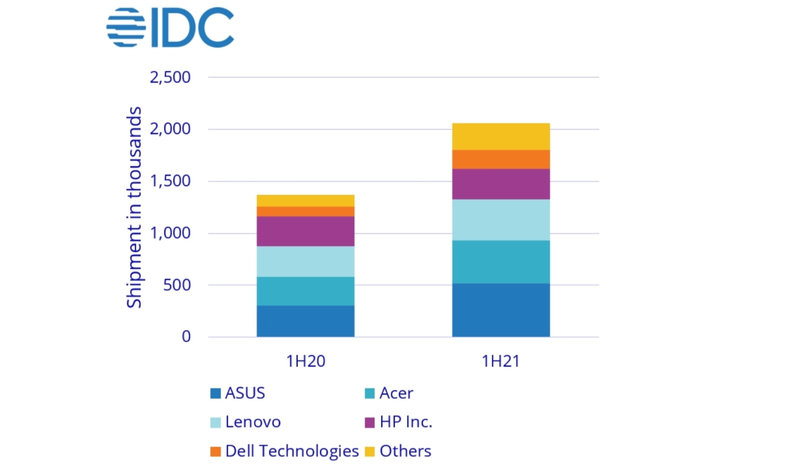Tanpa menyebut secara tegas perolehan pangsa pasar masing-masing vendor PC, IDC memaparkan lima besar produsen PC di Indonesia pada periode Januari–Juni 2021 berturut-turut. Nama tersebut adalah Asus (25 persen), Acer , Lenovo , HP (14 persen), dan Dell (9 persen).