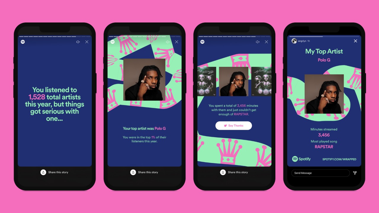Setelah masuk, pengguna akan menemukan cerita "Wrapped" mereka yang berisi informasi unik tentang pengalaman mendengarkan mereka. Seperti, artis teratas, lagu teratas, podcast teratas, genre, dan total menit yang dihabiskan untuk menikmati konten audio di sepanjang tahun 2021.