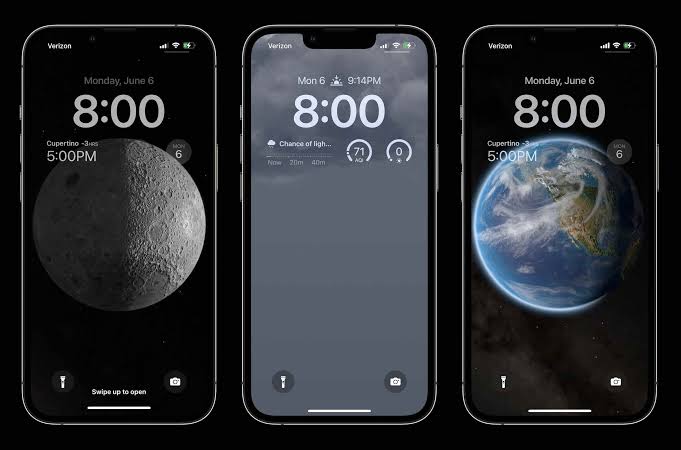 Di iOS 16, Apple menghadirkan live wallpaper bertema Astronomi, misalnya bumi ke iPhone. Di live screen atau live wallpaper tersebut, Apple akan menampilkan gambar bumi yang disorot dari luar angkasa. Begitu pengguna iPhone menggulirnya, foto bumi itu akan diperbesar (zoom).