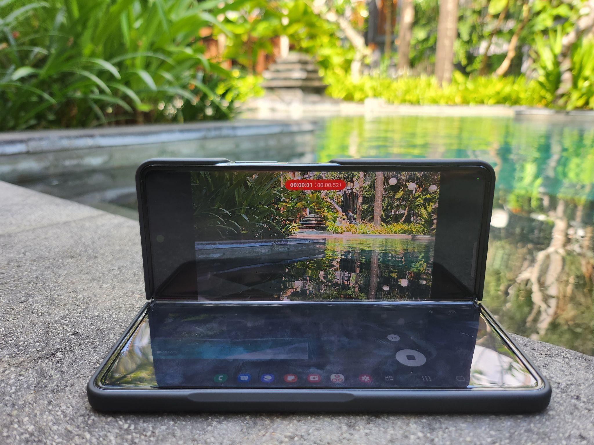 Dengan cara ini, kamu bisa ambil berbagai footage dengan mudah seperti foto di tepi kolam, photo-group bareng teman, hingga time-lapse yang bisa diatur tingkat percepatannya.