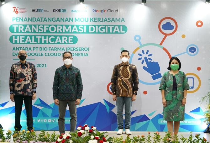 Penandatanganan Memorandum of Understanding (MoU) dilaksanakan di Bio Farma Bandung Oleh Direktur Utama Bio Farma, Honesti Basyir yang didampingi oleh Direktur Transformasi dan Digital Bio Farma, Soleh Ayubi, dan Megawaty Khie Country Director Google Clo