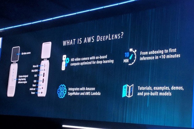 DeepLens juga dibekali dengan kamera 4MP (180p), deep learning inference engine yang desainnya dapat disesuaikan, WiFi, MicroSD, Mini-HDMI dan USB.