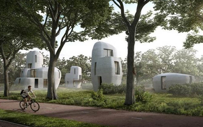 Sebuah kompleks real estate yang terdiri atas lima rumah akan dibuat dengan menggunakan sistem cetak menggunakan material beton. Bukan proyek main-main, misi ini digarap oleh tim peneliti dari Eindhoven University of Technology. Belanda bekerja sama dengan konsultan arsitektur Van Mierlo.