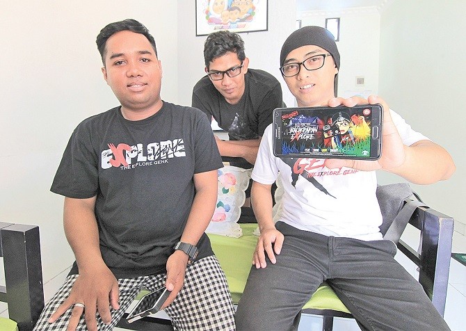 FUAD MUHAMMAD/KP SANG KREATOR: Dari kiri, Rahman Saleh, Tiar Hermawan, dan Ardhan. Pencetus gim pertama karya anak Kota Minyak yang berjudul Balikpapan Explore.