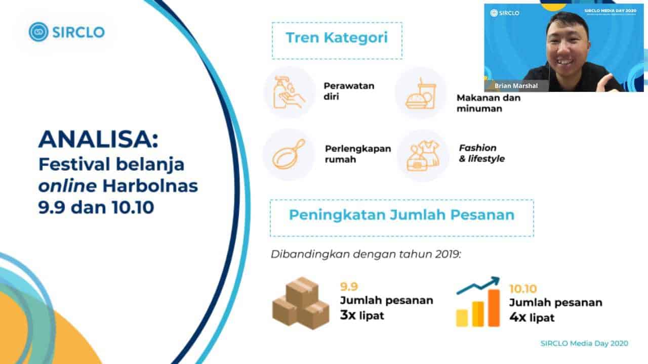 “Adanya pandemi justru mengakselerasi industri E-Commerce di Indonesia, hingga diprediksi bertumbuh sebesar 91 persen, jauh melampaui proyeksi sebelumnya yang hanya sebesar 54 persen. Hal ini bisa terjadi karena infrastruktur ekonomi digital Indonesia telah siap untuk melaju ke tahap berikutnya, terutama dengan tingginya penetrasi smartphone dan penggunaan internet di masyarakat”, ungkap Brian Marshal, CEO dan Founder Sirclo melalui jumpa pers virtual pada Rabu (4/11).